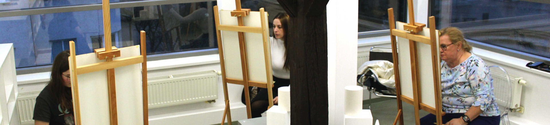 Na kurze sa snažíme vytvoriť ateliérové podmienky a kreslíme hlavne na maliarskych stojanoch. Začíname krátkymi tematickými prednáškami. Následne sa pracuje na témach, ktoré nás vždy posunú ďalej k zvládnutiu zátišia komplexne.